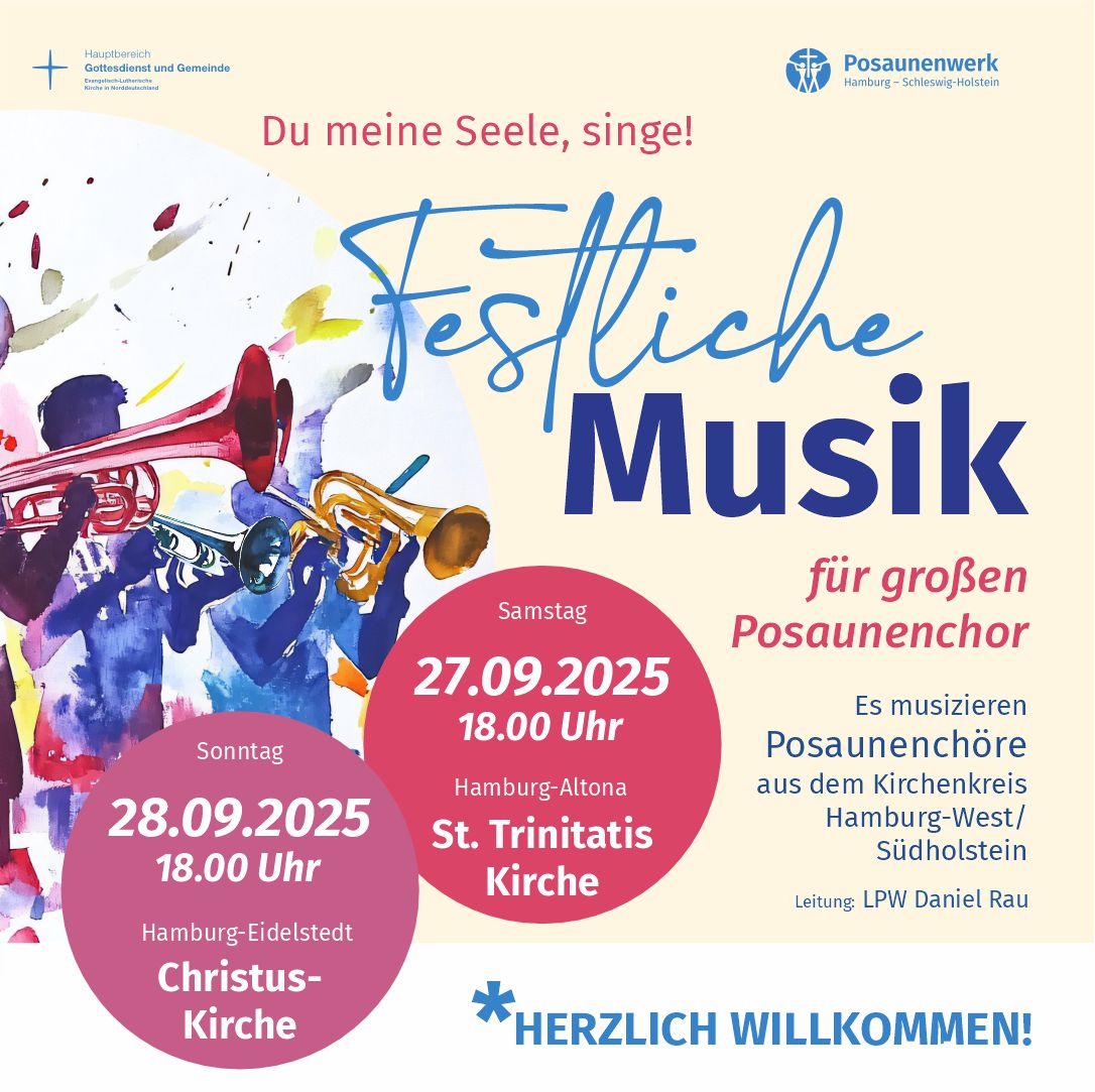 Es musizieren die Posaunenchöre des Kirchenkreises Hamburg-West/Südholstein unter der Leitung von LPW Daniel Rau. Freuen Sie sich auf ein abwechslungsreiches Programm voller festlicher Musik, das sowohl klassische Kirchenmusik als auch mitreißende Bläserklänge umfasst.